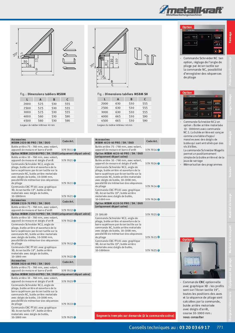 Butée arrière motorisée en option 10 - 1000 mm avec commande NC 2. La butée arrière est conçue comme une table de support solide avec des doigts d'arrêt qui sont entraînés par des vis à billes à recirculation. La commande Schneider Magelis est ici étendue et permet le positionnement simple de la butée arrière et de la joue de serrage. La mémoire programme reste la même.