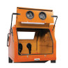 Cabine de sablage idéale pour les travaux occasionnels. Elle est dotée d'une très grande ouverture frontale assistée par vérins à gaz pour un chargement et déchargement aisé. La cabine est munie d'une unité d'aspiration intégrée avec filtre à air remplaçable ce qui facilite le sablage.
