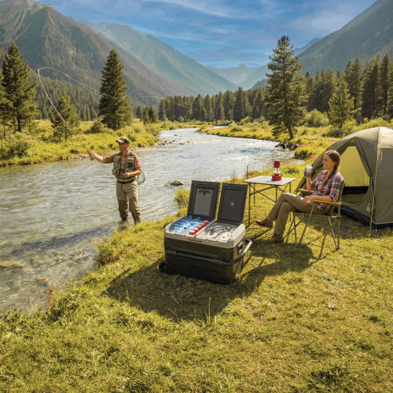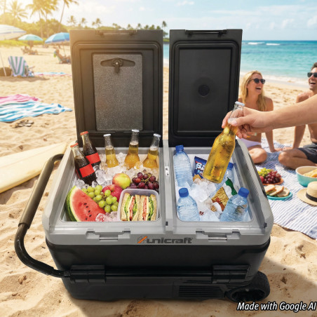Glacière à deux zones réglable jusqu'à -20 °C, avec port de charge USB