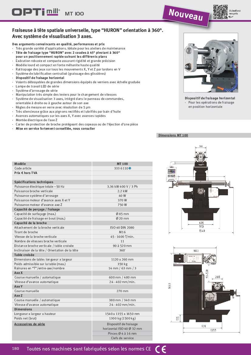 Fraiseuse à tête universelle, type “HURON” orientation à 360°. Avec système de visualisation 3 axes.