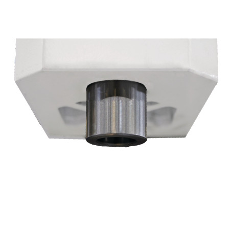 Presse manuelle robuste et précise, avec déport réglable, broche rectifiée et réglage rapide de la hauteur de travail.