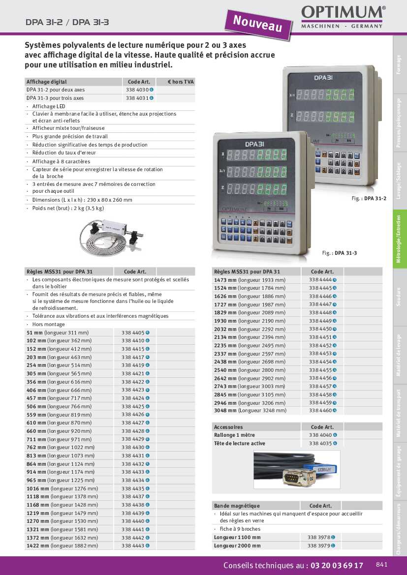 Règle de mesure Optimum MSS31 pour DPA 31 - 2845 mm