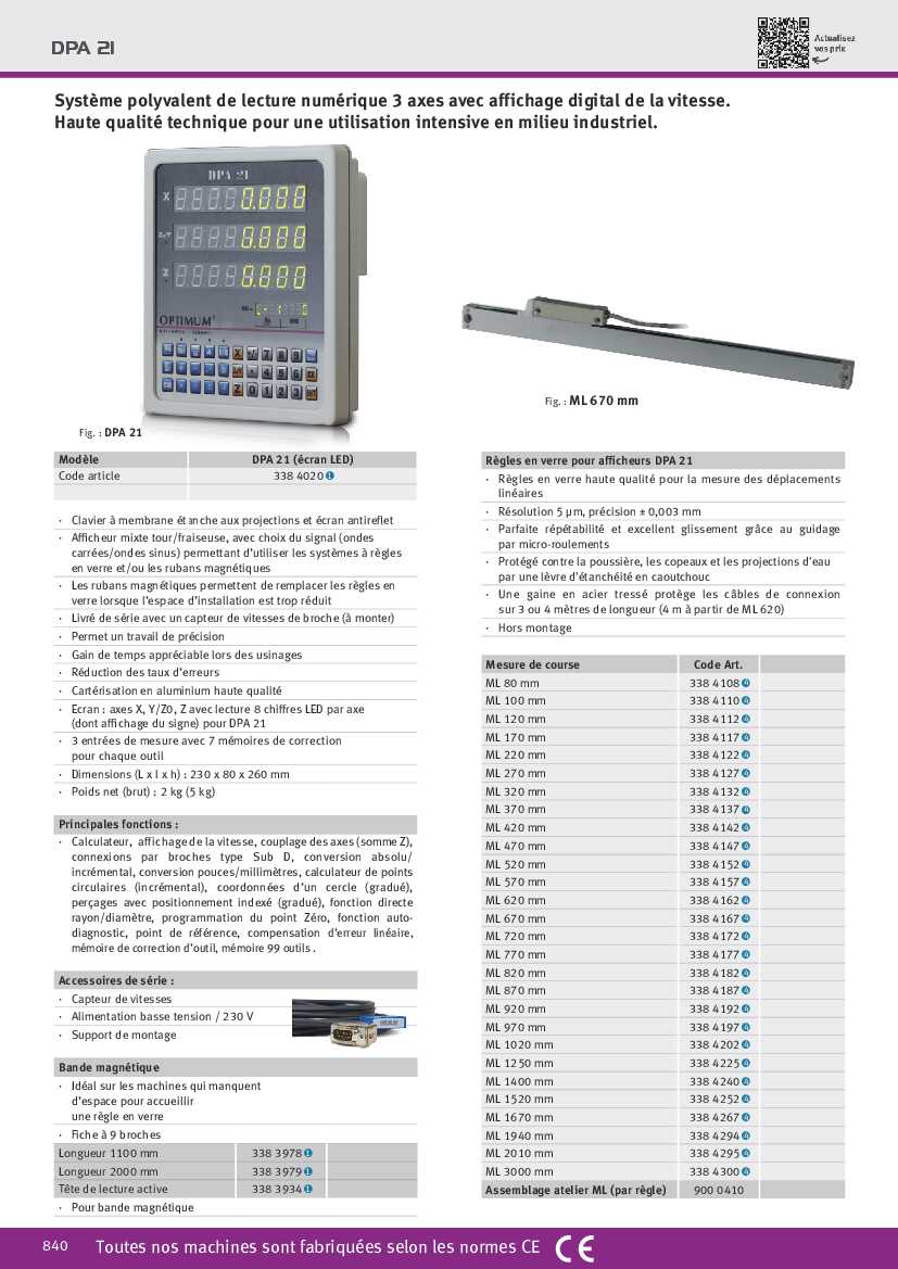 - Résolution 5 μm, précision ± 0,003 mm
