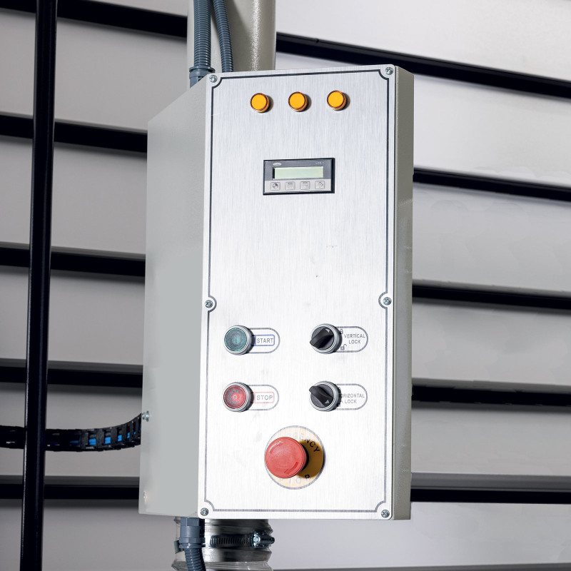 VPS 2251 VR ED - Scies à panneaux verticales VPS 22-51 VR ED avec inciseur, aspiration et affichage numérique des dimensions.