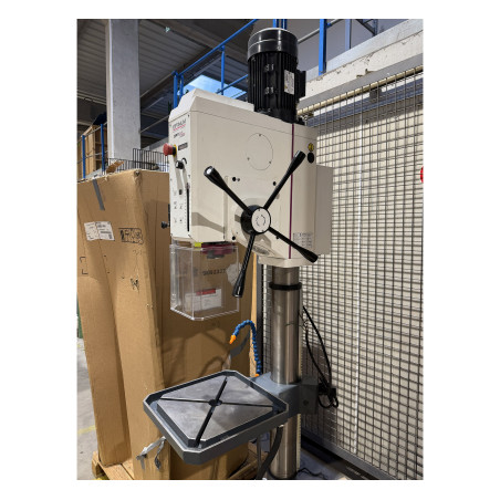 Perceuse à colonne équipée d’une boîte mécanique couplée à un variateur de vitesse SIEMENS. Avec descente automatique électromagnétique et couple de travail très élevé. Modèle de démonstration vendu sans sa caisse, sans la prise et avec quelques éraflures de peinture.