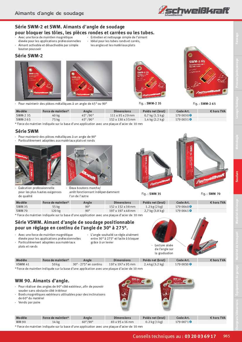 Aimant d'angle de soudage Schweisskraft WM 90